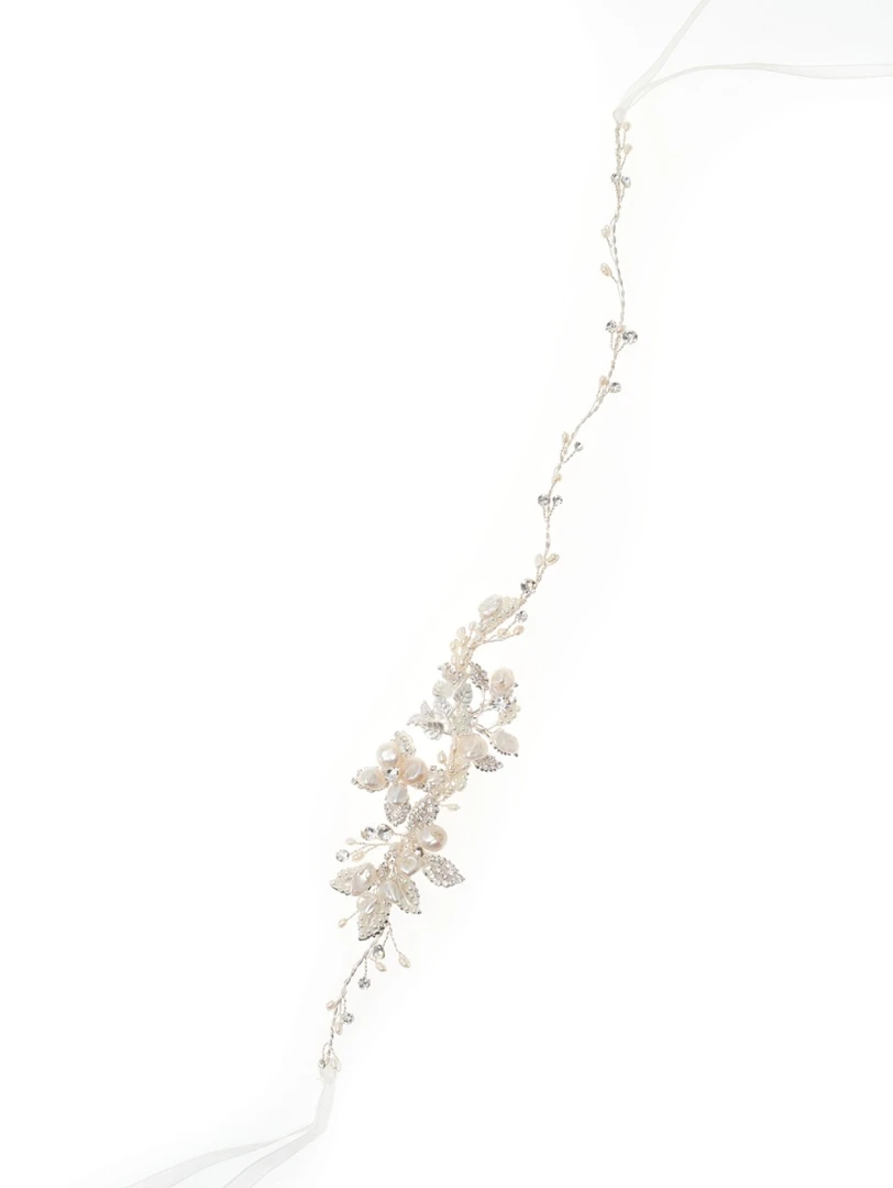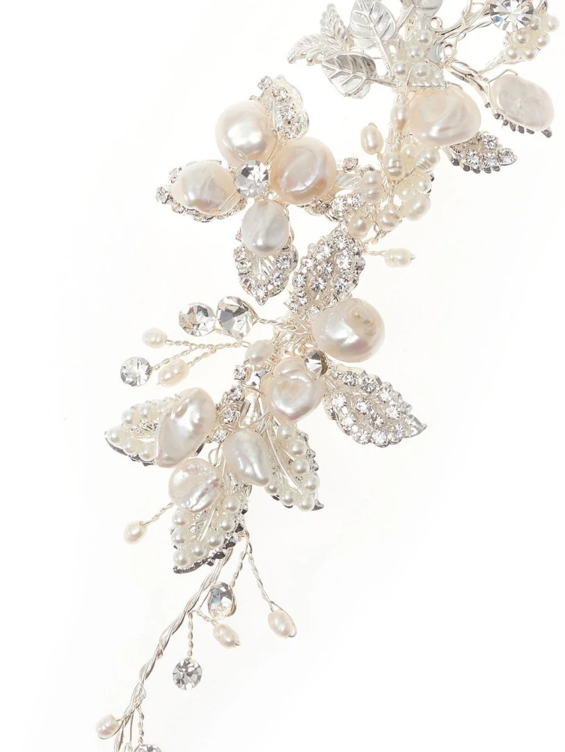 Breng tijdloze romantiek in jouw bruidslook met dit haarsieraad van Poirier. Ontdek de sublieme combinatie van blaadjes, zoetwaterparels en strasssteentjes die jouw uitstraling naar een hoger niveau tillen.