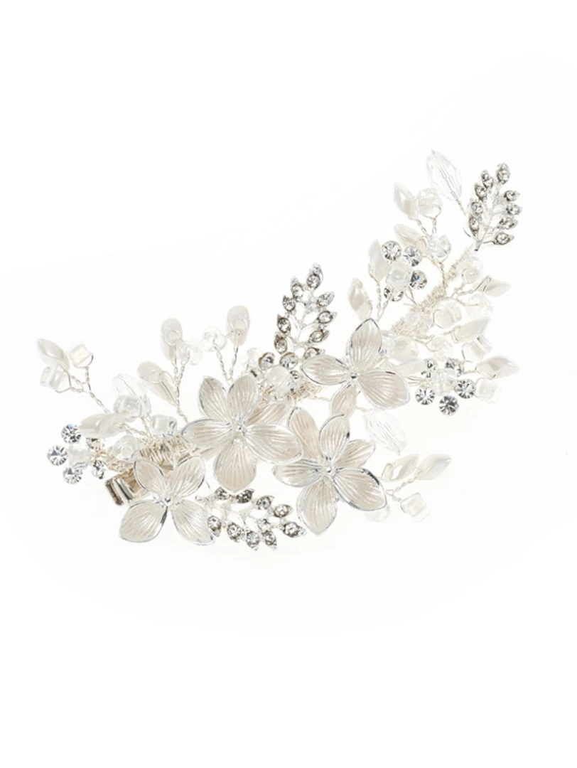 Personaliseer jouw bruidslook met de keuze tussen zilver, roségoud of goud voor de basis van de haarclip. Elk detail, van de kleurrijke bloemetjes tot de fonkelende strasssteentjes, is zorgvuldig ontworpen om jou te laten stralen op je trouwdag.