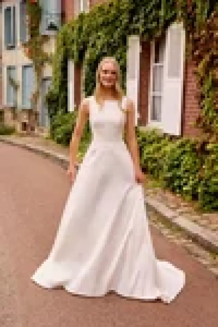 Of je nu trouwt in een elegant landhuis, een romantische tuin of een stijlvolle city wedding, deze jurk past bij elke setting. De micado A-lijn trouwjurk Sweetheart 20025 is ontworpen voor bruiden die op zoek zijn naar tijdloze schoonheid met een moderne uitstraling.