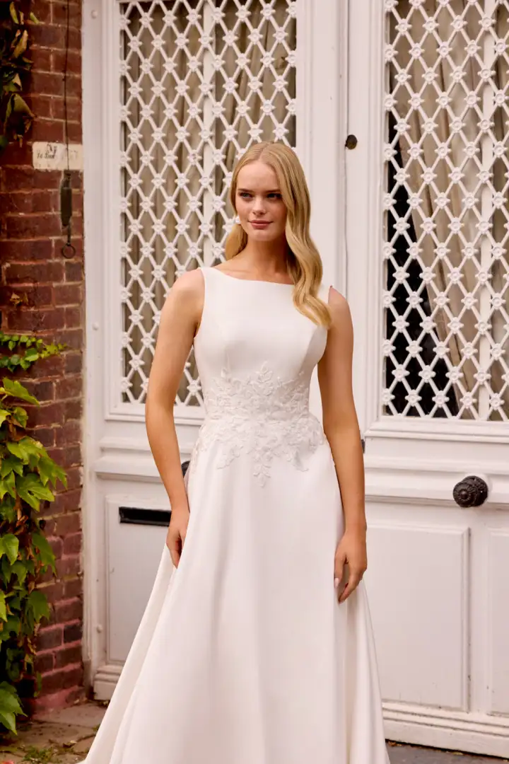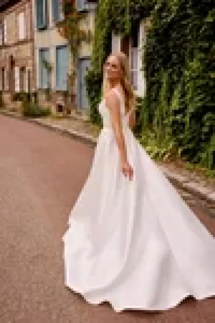 De Sweetheart trouwjurk 20025 is de perfecte keuze voor bruiden die willen stralen in een jurk die klasse en stijl uitstraalt. De A-lijn pasvorm zorgt voor een prachtig vrouwelijk silhouet en laat de taille subtiel uitkomen, terwijl de rok soepel uitloopt in een elegante vorm. Deze jurk combineert eenvoud met verfijning — ideaal voor een chique ceremonie of stijlvolle bruiloft.